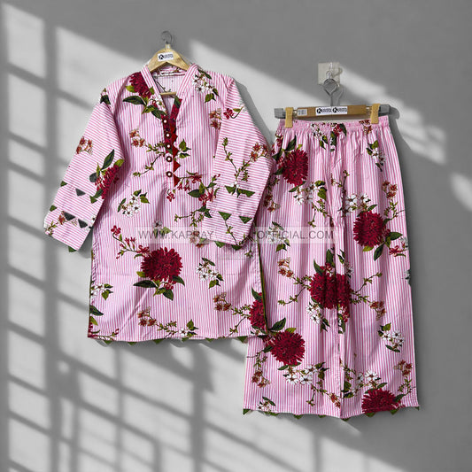 Digital Flower Line Printed 2-Piece Suit
