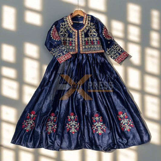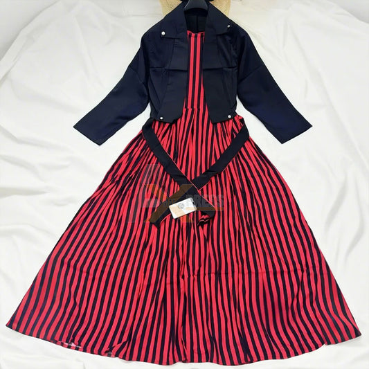 Turkish Cherry Elegance – Embroidered Front Open Frock