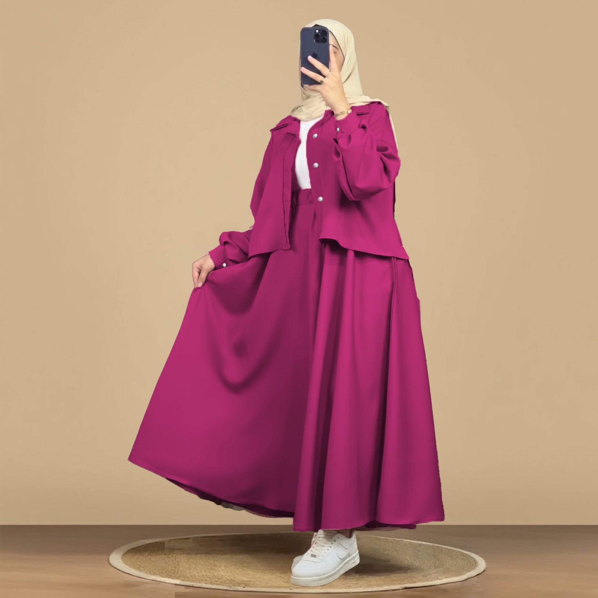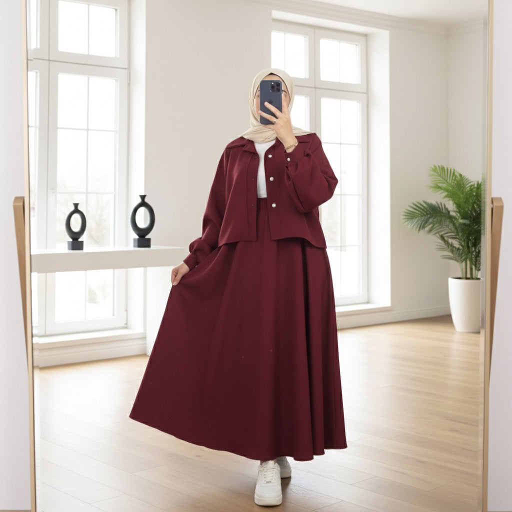 - Trendy 2-piece set with a modest design
